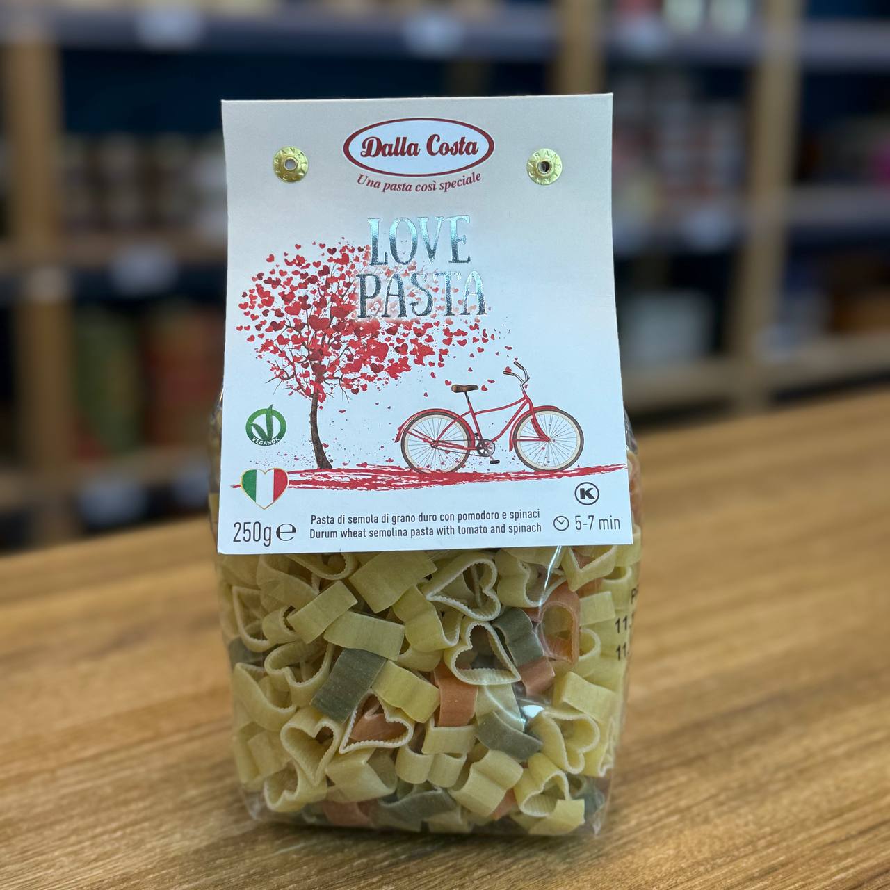Макаронные изделия без яиц со шпинатом и томатами "Любовь" "Dalla Costa" 250 грамм